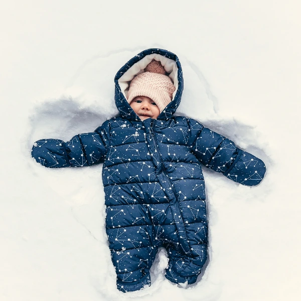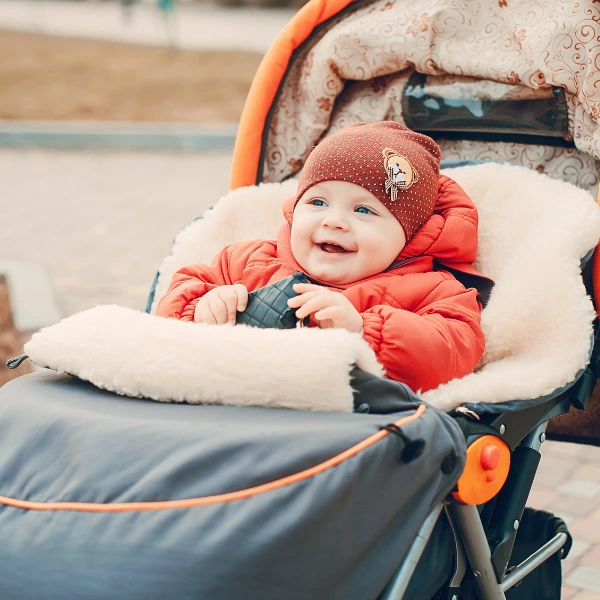 Pour le protéger du froid, une combinaison pilote ou un nid d’ange est idéal, avec une couverture supplémentaire si nécessaire. Veillez toujours à bien couvrir la tête, les mains et les pieds, qui se refroidissent très vite.