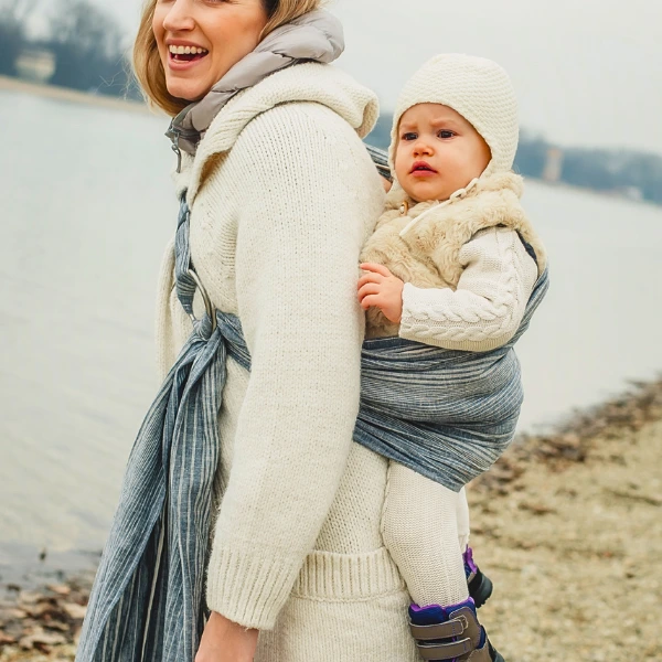 Le sling est une écharpe courte munie de deux anneaux, qui se règle en un geste. C’est un mode de portage rapide, intuitif et très apprécié pour les moments où votre bébé souhaite être porté puis redescendre fréquemment. Il est parfait pour l’allaitement, les trajets courts ou les situations où vous avez besoin d’une installation express.