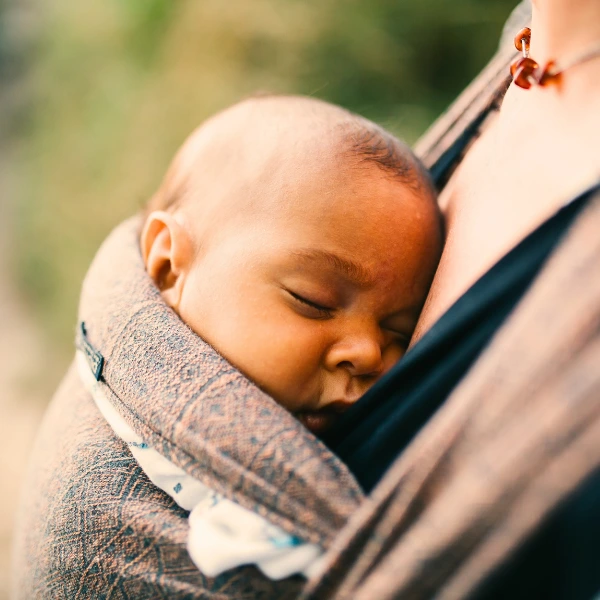 Le portage offre à votre bébé un cocon rassurant et réconfortant, proche de ce qu’il a connu in utero (chaleur, mouvements, battements du cœur, voix). Cette continuité l’aide à se sentir en sécurité et à s’habituer progressivement à son nouvel environnement.